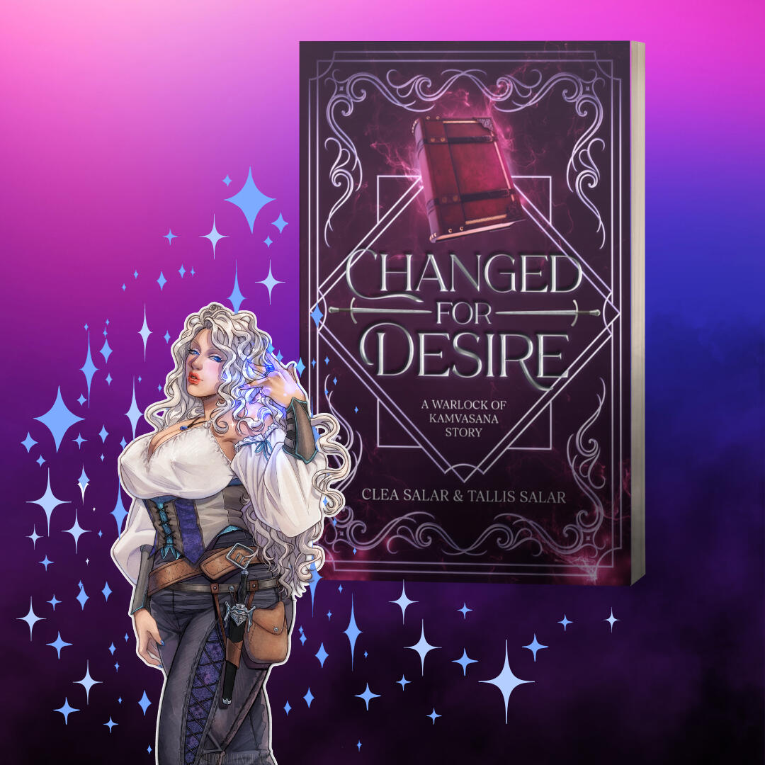 Translating cryptic texts is easy; translating the heart, however...It’s been two months since the trio of unlikely heroes recruited Octavia Baudelaire, warlock bound to the Primordial of Desire, to join their quest for fortune and glory. Recovering kidnapped villagers from vengeful raiders? Done. Conquering ancient towers full of cursed horrors? Dusted.While fighting demons and hunting down rare alchemical agents, the four find their bonds continuing to grow. Alces is full of flattery and gallantry, placing himself between Octavia and danger at every turn. Sumner is a storm of passion and vows to hunt down those who would harm her. Durante is guilelessly adoring and seeks out her guidance and mastery of the arcane. Octavia has only ever known Desire, but desire doesn’t explain the flutter beneath her ribs.Octavia trusts them enough to put her life in their hands, but can she trust them with her heart?CHANGED FOR DESIRE is the latest title from cheeky and geeky storytellers Clea Salar and Tallis Salar.